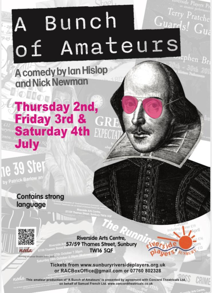 | **Wed 10th June** Riverside Players of Sunbury AGM Tue 16th June 2026 Open auditions – The Watsons Wed 17th June 2026 Open auditions – The Watsons Thu 2nd July 2026 A Bunch of Amateurs – 7:30pm Fri 3rd July 2026 A Bunch of Amateurs – 7:30pm Sat 4th April 2026 A Bunch of Amateurs – 7:30pm |